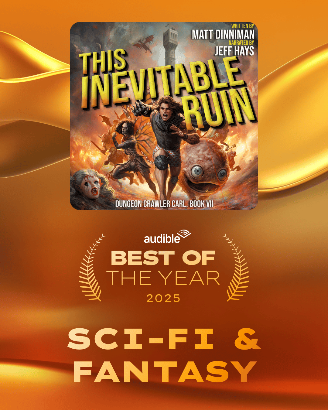 I’m here for all the hype. Okay, hear me out. If you’ve heard just an inkling of the hype for this series, believe it! Forget the grain of salt, it’s seasoned enough, grab your fork and knife and devour this series! I don’t often go for things that are overly popular. Twilight, nah. 50 Shades, tried it… pass. Pickleball? I’d rather play racquetball. But Dungeon Crawler Carl? I cannot get enough, and this accolade, Audible’s Best of the Year in Sci-Fi and Fantasy, is well deserved!