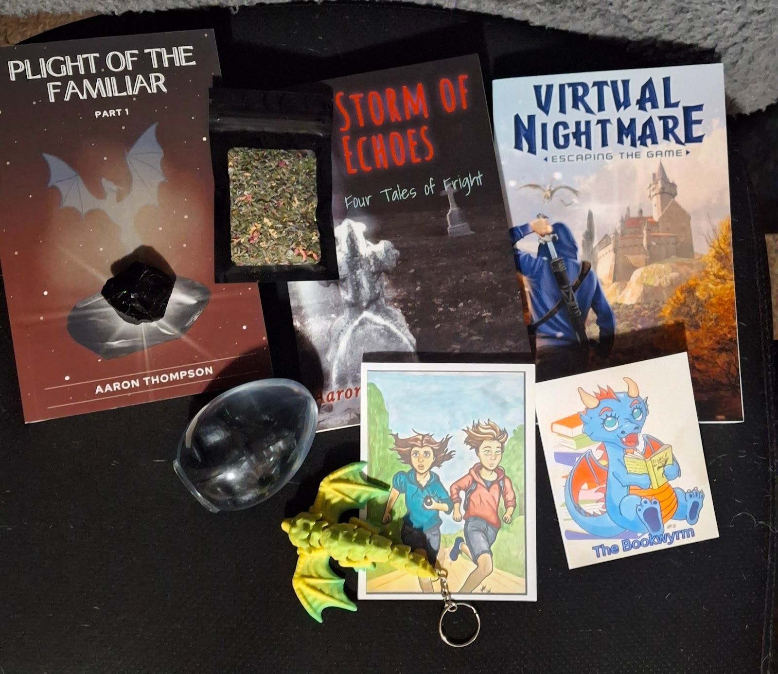 So yes, it is time to do a drawing. One subscriber will get signed copies of Plight of the Familiar, Virtual Nightmare, and Storm of Echoes, along with a resin dragon egg, a 3D printed dragon egg, a piece of obsidian, artwork, and a packet of tea! I would add all that up and tell you how much of a retail prize that is ($97) but my bank account might disown me. (not including shipping fees) I have to find a randomizer app or something that will randomly spit out a winner’s name (seriously, that’s a lot of freebies) for me and then I will contact you via (not including all the time involved) email to get the prizes out.